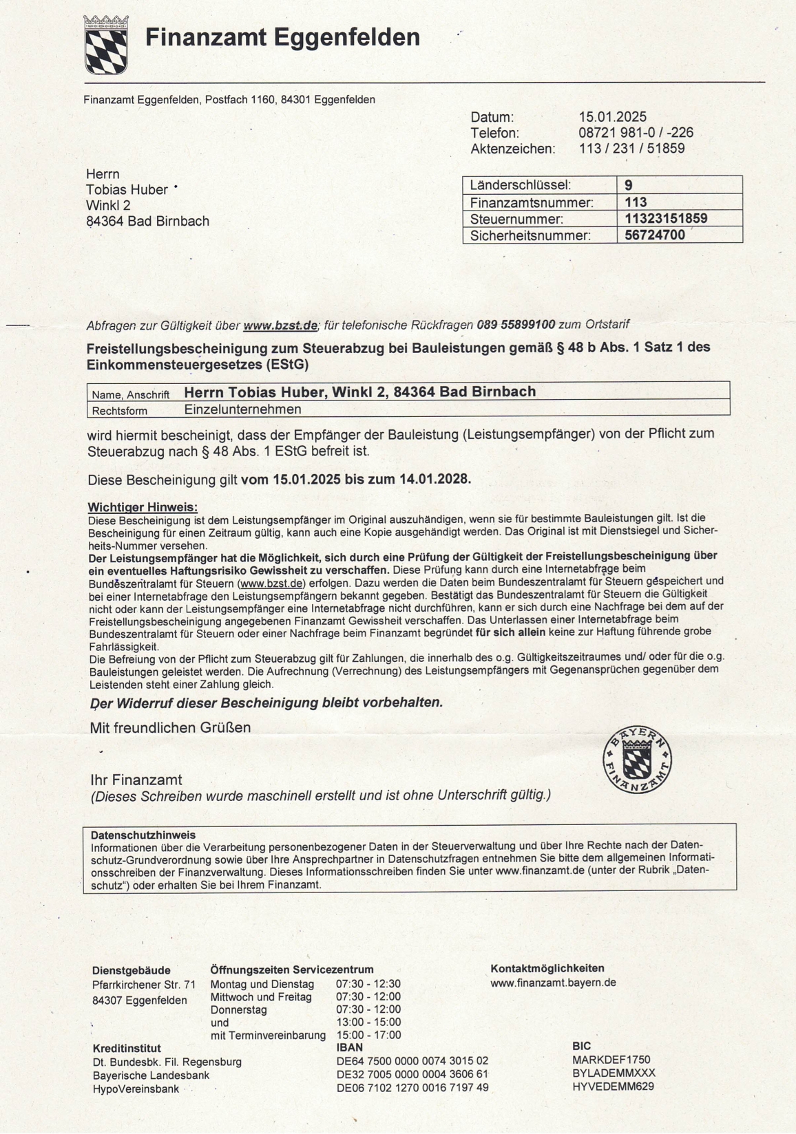 Freistellungsbescheinigung